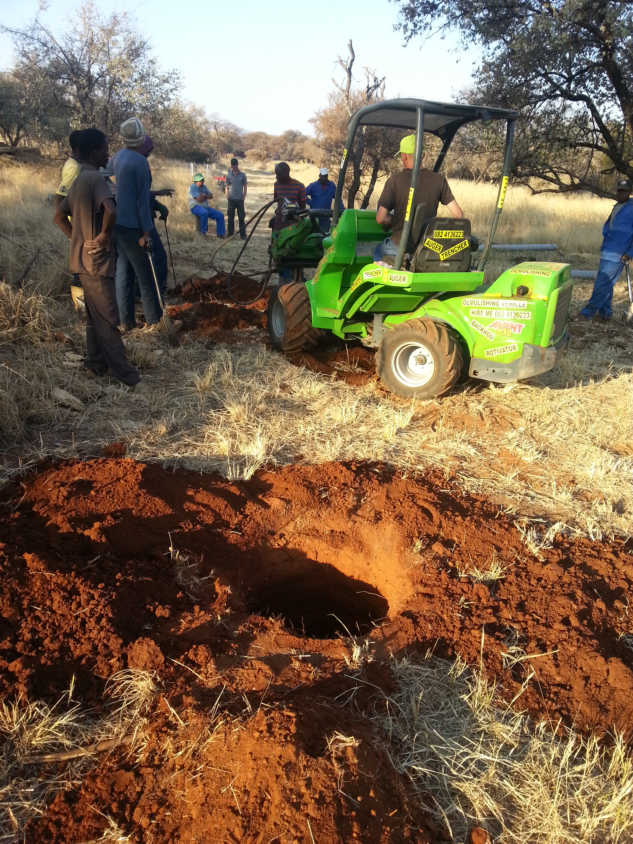 Our Post Hole Diggers can dig holes up to a 750mm diameter and a depth of at least 1.5 meters, up to 2.3 meters with an extension. The Post hole diggers can drill holes for street lights, palisades planting of trees, lapas, steel carports ext.